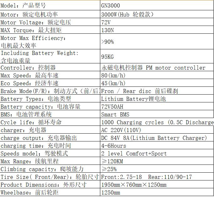 GN3000 E-Motorcycle specification